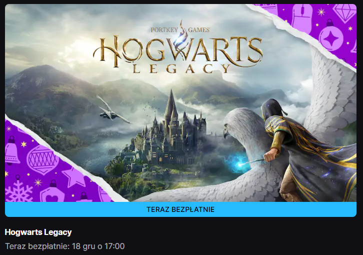 Hogwarts Legacy za darmo pełna wersja gry Dziedzictwo Hogwartu do pobrania na komputer PC w promocji klucz aktywacyjny do 18 grudnia. Bezpłatna wersja pełna gry dostępna do pobrania prezencie od Epic Games i próbna w Playstation Plus Premium. Hogwarts Legacy został dodany do abonamentu dla użytkowników konsoli PlayStation. Hogwarts Legacy to gra RPG z otwartym światem osadzona w uniwersum Harry’ego Pottera, stworzona przez Avalanche Software i wydana przez Warner Bros. Games pod szyldem Portkey Games. Premiera miała miejsce 10 lutego 2023 roku na platformach PC, PlayStation 5 i Xbox Series X/S, z późniejszymi wydaniami na PlayStation 4, Xbox One (kwiecień 2023) i Nintendo Switch (listopad 2023). Gra przenosi graczy do magicznego świata XIX wieku, na długo przed wydarzeniami z książek J.K. Rowling.