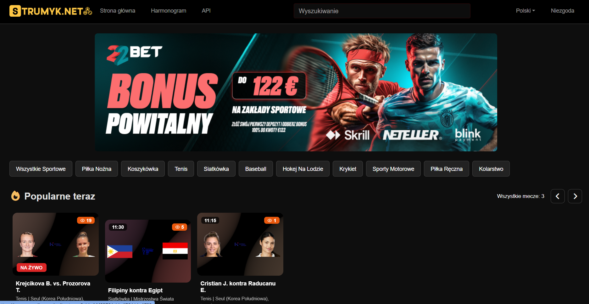 Zapytanie „strumyk transmisje” odnosi się prawdopodobnie do popularnego (choć kontrowersyjnego) serwisu streamingowego Strumyk TV (znanego też jako Strims Top, Strims World czy Strumyk PL), który oferuje darmowe transmisje sportowe online, głównie mecze piłkarskie i inne wydarzenia sportowe. Jest to fraza często wyszukiwana przez polskich kibiców szukających streamów na żywo. Na podstawie aktualnych informacji (stan na wrzesień 2025), serwis ten jest nielegalny, pełen reklam i malware, a niedawno miał problemy z dostępnością. Poniżej wyjaśnię wszystko krok po kroku, skupiając się na legalnych alternatywach – bo polecam unikać pirackich źródeł dla bezpieczeństwa i wsparcia sportu.
